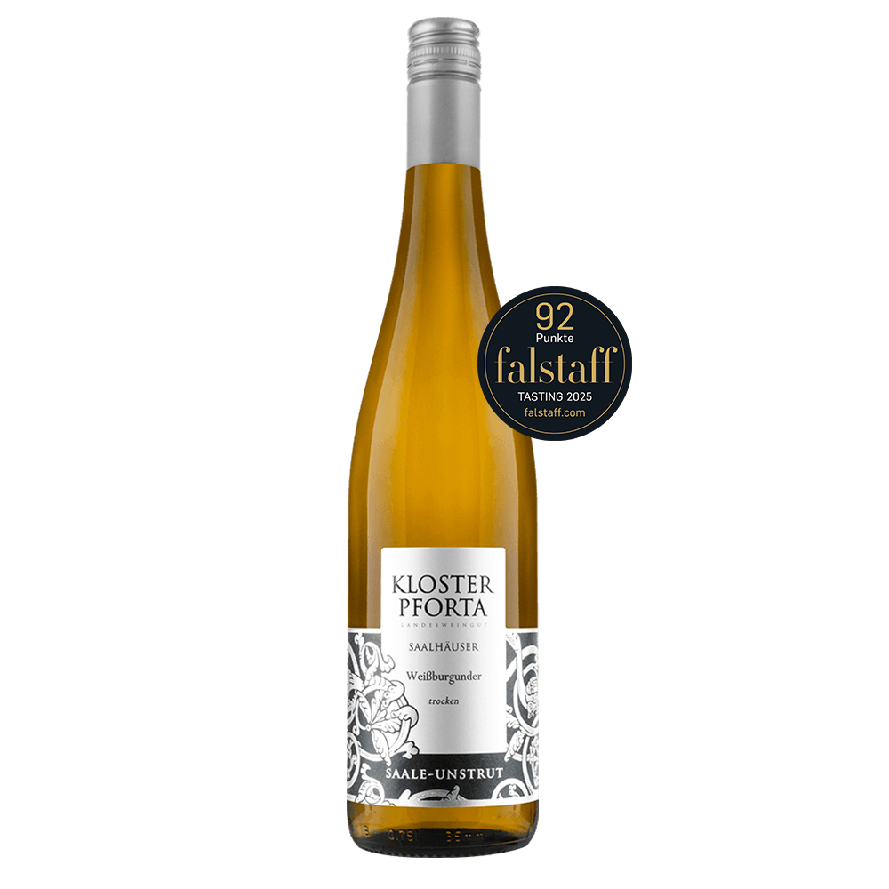 Das bekannte Werbeschild mit dem Schriftzug „Saale-Unstrut Wein“ grüßt von den Saalhäuser Weinbergen hinüber nach Schulpforte. Dort befindet sich im Torhaus des ehemaligen Zisterzienserklosters auch unsere Vinothek. Isabell Ritter mag den Blauen Zweigelt aus den Saalhäusern ganz besonders. Mindestens 12 Monate lagerte der Rotwein in großen Fässern aus hochwertigem Eichenholz, bevor er in die Flasche mit dem silbernen Etikett kommt. Und nicht nur ihr schmeckt der Wein hervorragend, sondern auch so mancher Jury in Weinwettbewerben, denn Preise hat er schon oft gewonnen.